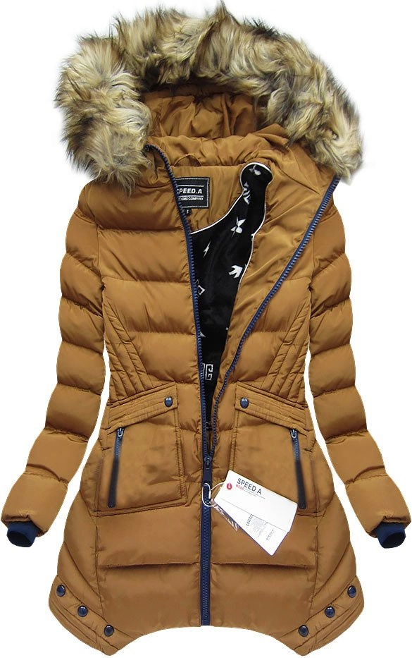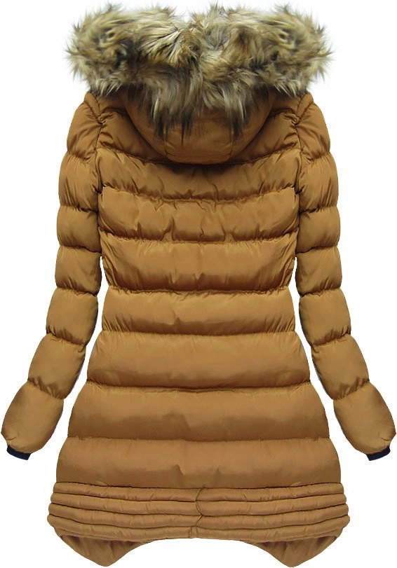 PIKOWANA KURTKA Z KAPTUREM KARMELOWA (W810BIG)