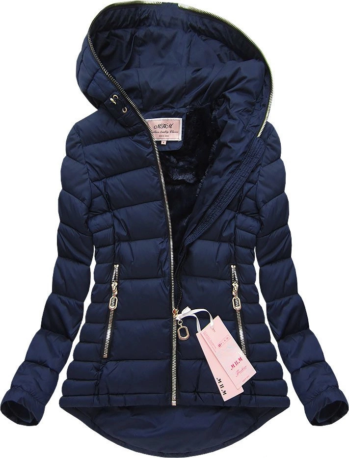 KRÓTKA PIKOWANA KURTKA Z KAPTUREM GRANATOWA (W516)