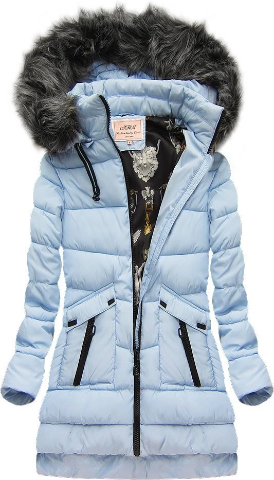 PIKOWANA KURTKA Z KAPTUREM BŁĘKITNA (W522)