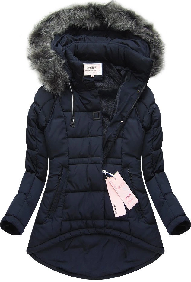 ASYMETRYCZNA KURTKA Z KAPTUREM GRANATOWA (W510)