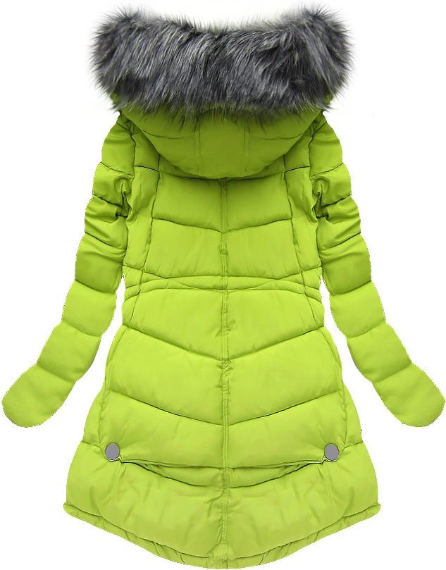 DŁUGA PIKOWANA KURTKA Z KAPTUREM LIMONKOWA (W506)