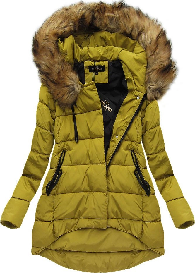 ASYMETRYCZNA KURTKA ZIMOWA MUSZTARDOWA (7670BIG)