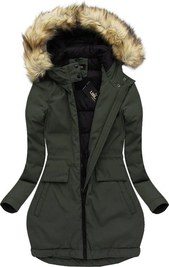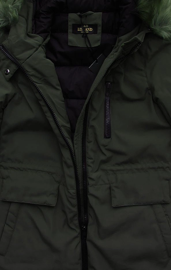 DŁUGA KURTKA Z KAPTUREM KHAKI (7680)