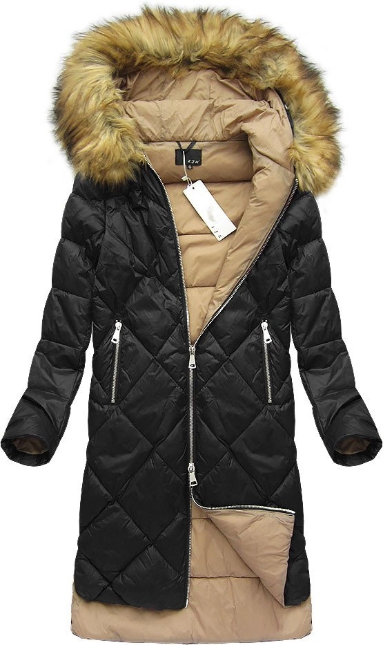 PŁASZCZ ZIMOWY Z Z PUCHEM NATURALNYM CZARNY (8069)