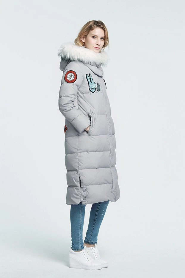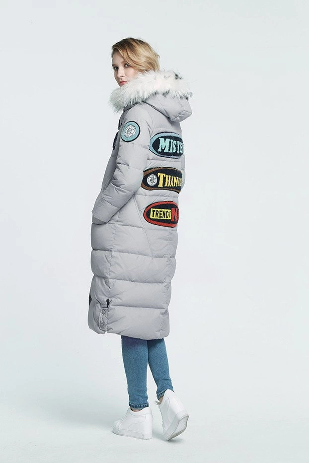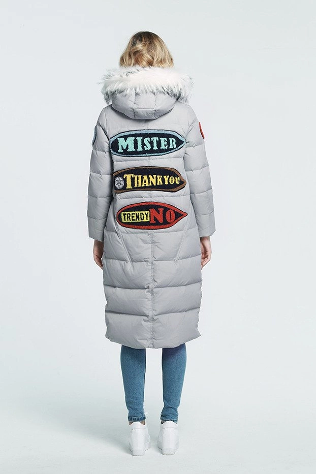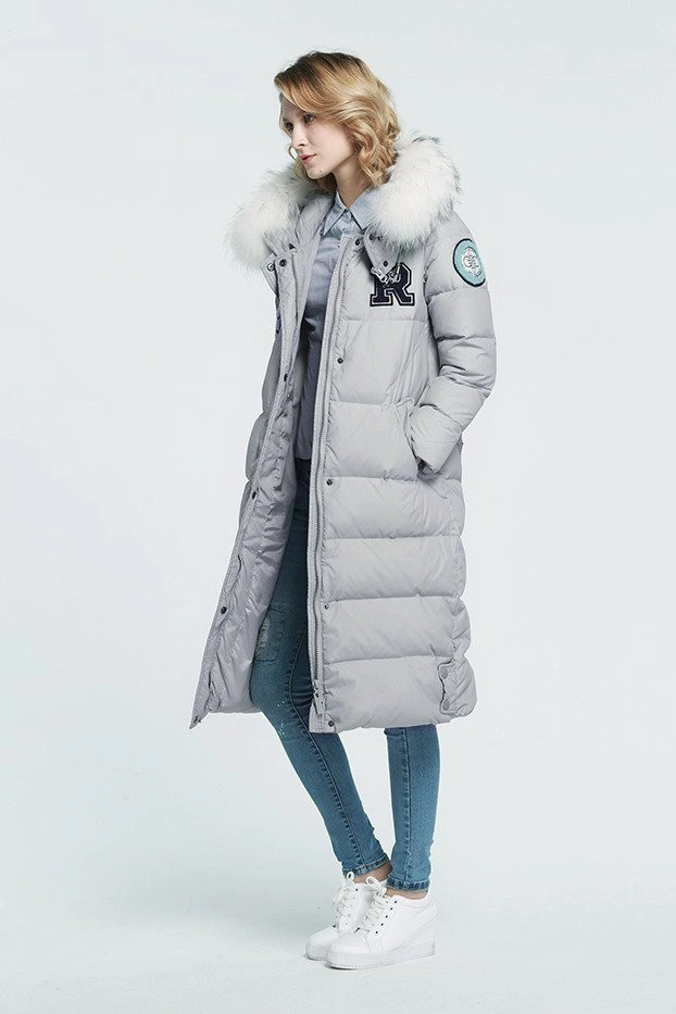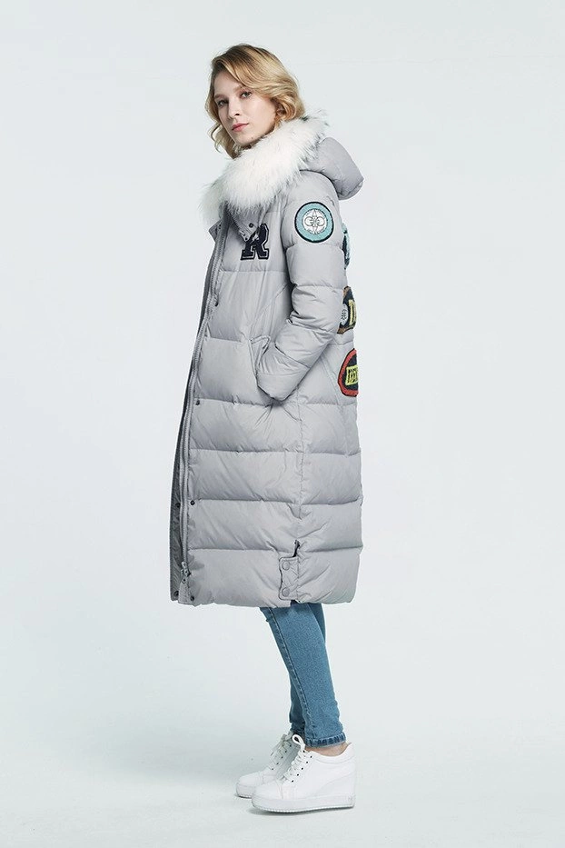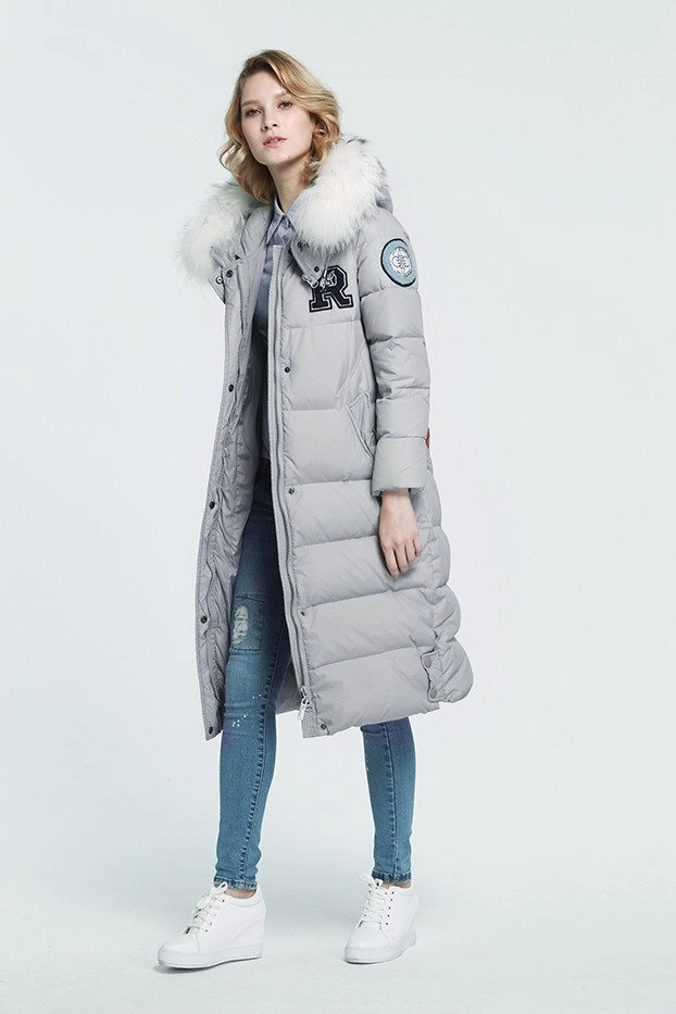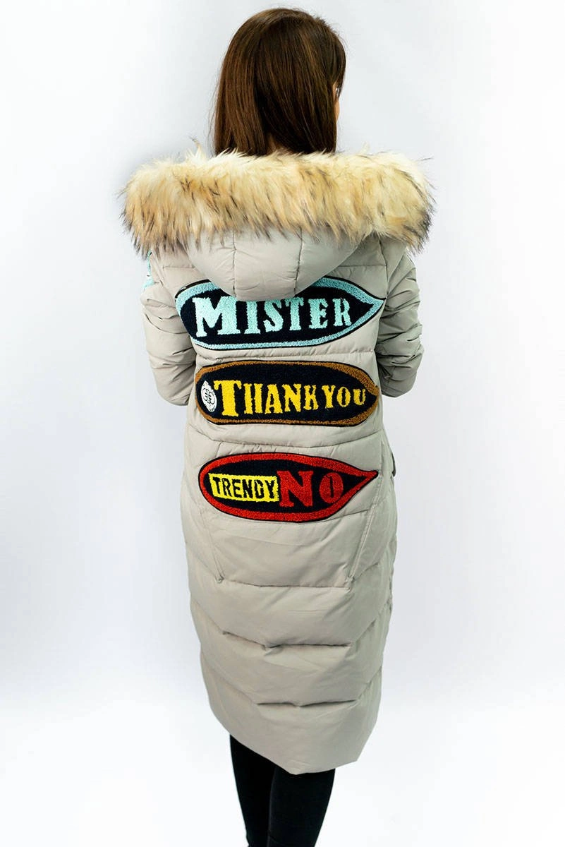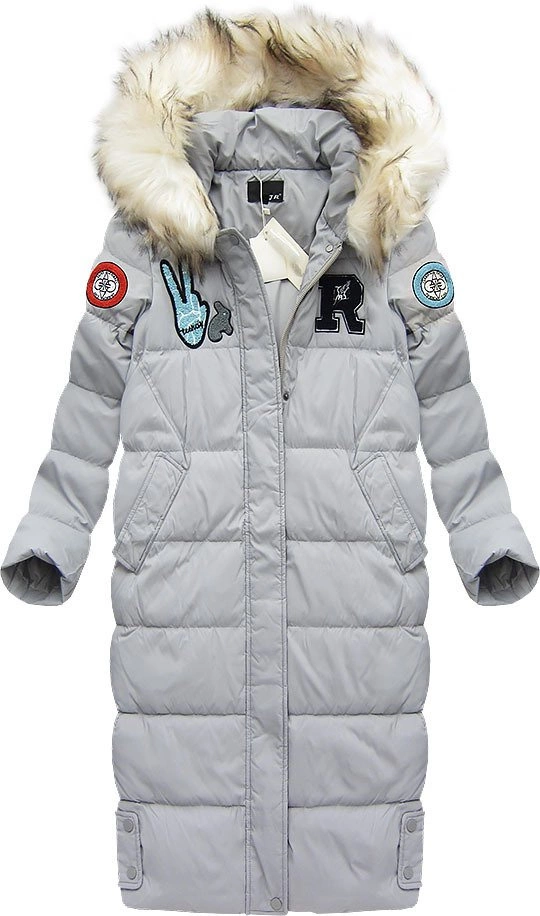 PŁASZCZ DAMSKI ZIMOWY Z PUCHEM NATURALNYM SZARY (8067)