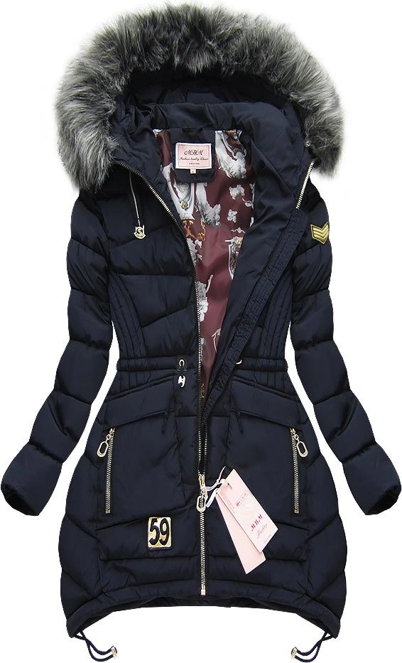 Bardzo ciepła pikowana kurtka zimowa z kapturem. Ocieplona doskonałej jakości puchem syntetycznym. Posiada nieodpinany kaptur z futerkiem. Futerko przy kapturze jest dopinane (na guziczki) i układa się na panelu/zakładce wokół kaptura. W kapturze są także troki ściągające. Kurtka ma stójkę przechodzącą w kaptur. Zapinana jest na zamek. Delikatnie taliowana - ładnie dopasowuje się do ciała. W pasie dodatkowo znajdują się troki ściągające z stoperami. Ma 4 kieszenie, w tym 2 zapinane na zamek oraz 1 kieszeń na rzep od wewnątrz. Wszystkie zamki mają finezyjne uchwyty. Na lewym przedramieniu i poniżej jednej kieszeni znajduje się modna naszywka. Dół kurtki ma wydłużone boki i znajdują się w nim troki ściągające z stoperami. Schowane ściągacze na końcach rękawów chronią przed napływającym zimnem. Fantastyczna wzorzysta podszewka. Wykonana z świetnej jakości materiału. Bardzo wygodna i praktyczna. Idealna do tworzenia fantastycznych stylizacji. Kurtka pięknie się prezentuje.