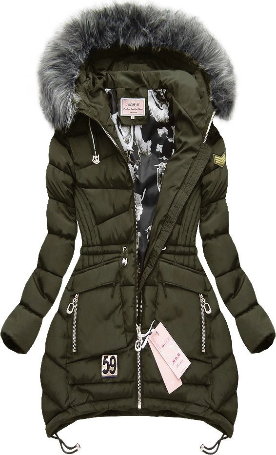 PIKOWANA KURTKA Z KAPTUREM KHAKI (W502-1)