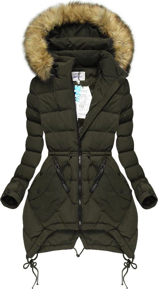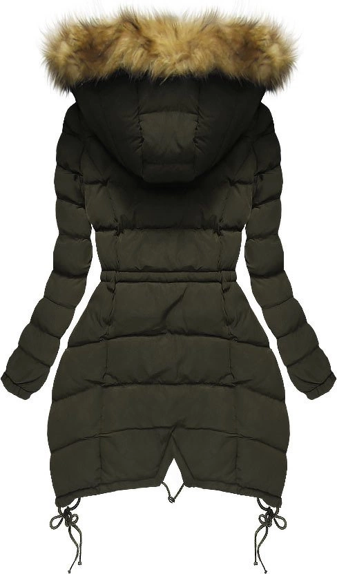 PIKOWANA KURTKA DAMSKA ZIMOWA Z KAPTUREM OLIWKOWA (3506W)
