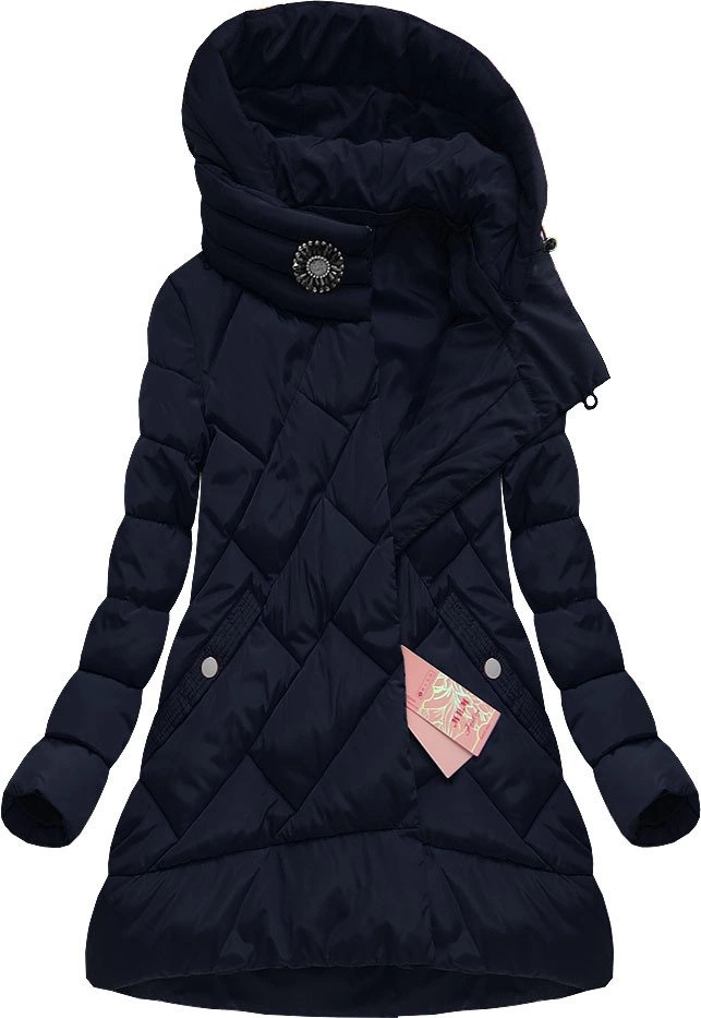 PIKOWANA KURTKA Z BROSZKĄ GRANATOWA (W600)