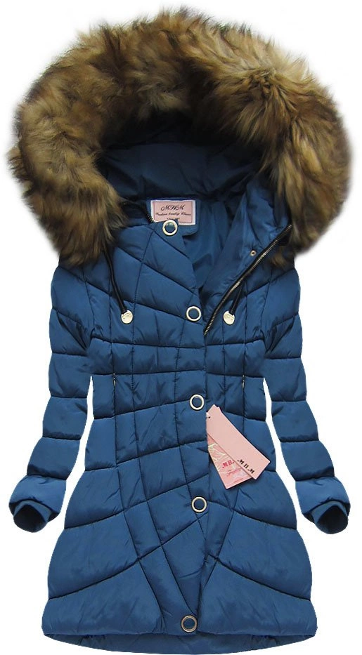 PIKOWANA KURTKA Z KAPTUREM CIEMNONIEBIESKA (W703)