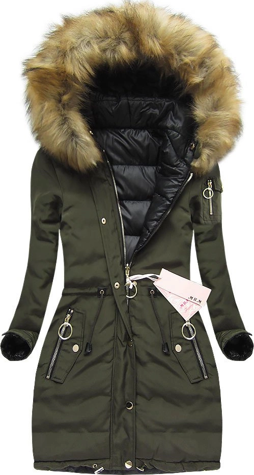 DWUSTRONNA KURTKA DAMSKA ZIMOWA Z KAPTUREM KHAKI 2 (W707)