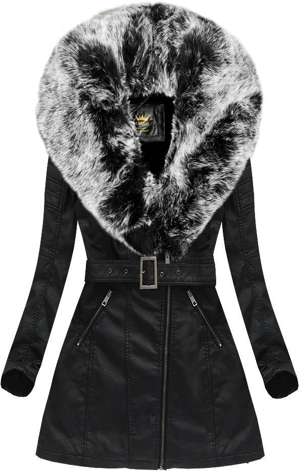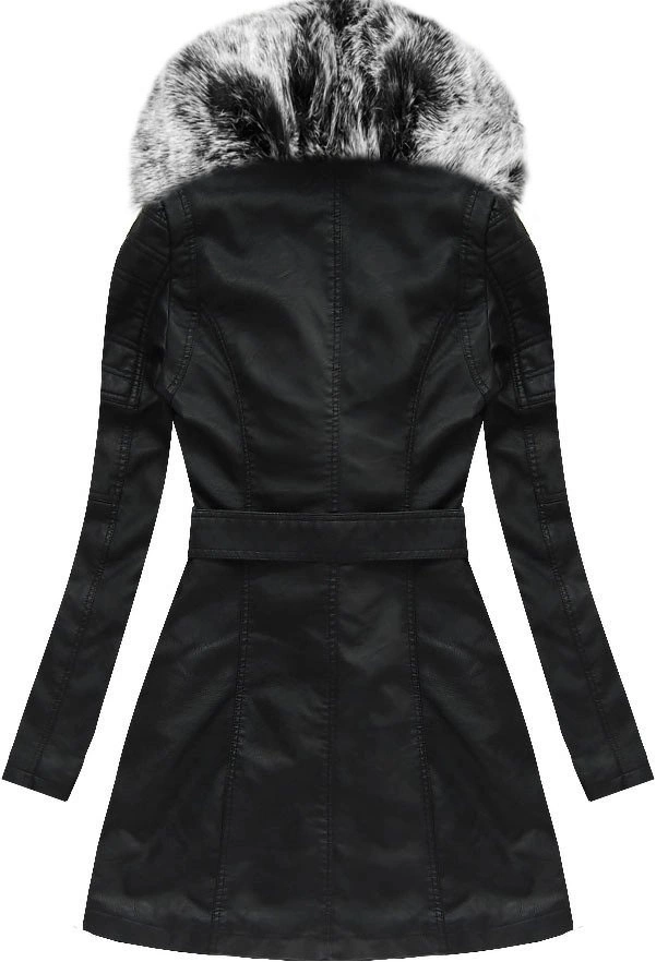 Płaszcz ze skóry ekologicznej z futrzanym kołnierzem Libland czarny-szary (LD-5518)