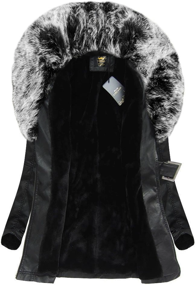 Opinie o Płaszcz ze skóry ekologicznej z futrzanym kołnierzem Libland czarny-szary (LD-5518)
