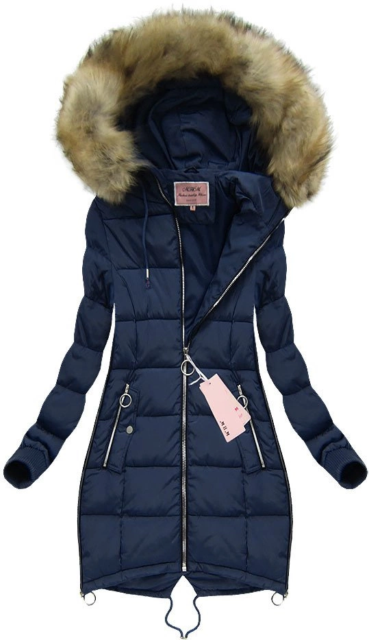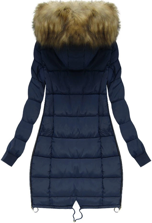 PIKOWANA KURTKA DAMSKA ZIMOWA Z KAPTUREM GRANATOWA (W128)