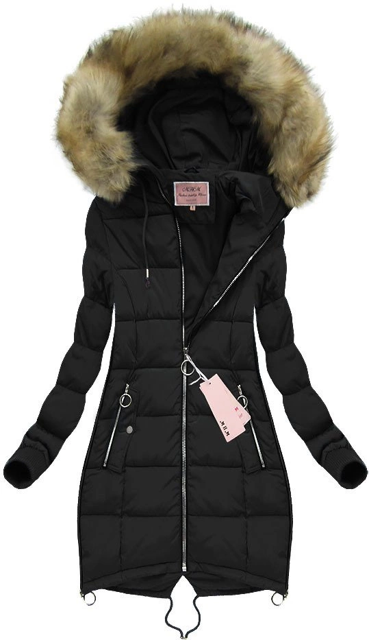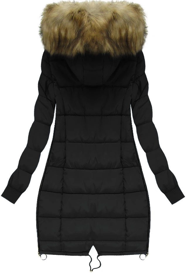 PIKOWANA KURTKA DAMSKA ZIMOWA Z KAPTUREM CZARNA (W128)