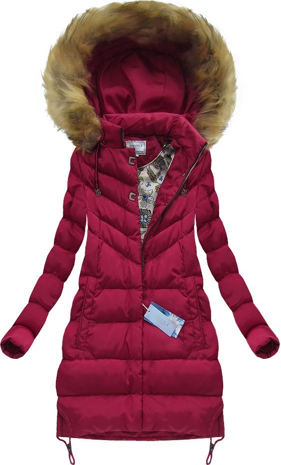 PIKOWANA KURTKA Z KAPTUREM BORDOWA (W580BIG)