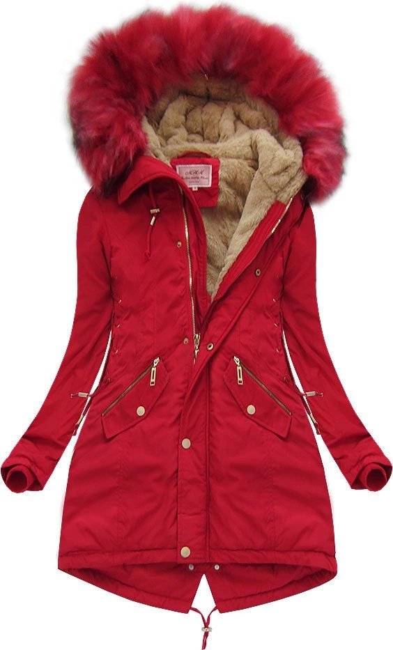 KURTKA ZIMOWA Z WIĄZANIAMI CZERWONA (W136)