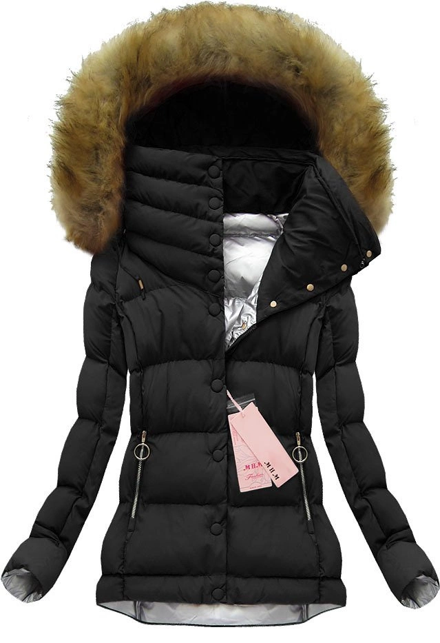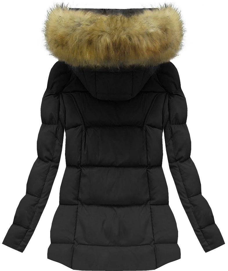 KURTKA DAMSKA ZIMOWA Z KOŁNIERZEM CZARNA (W135)