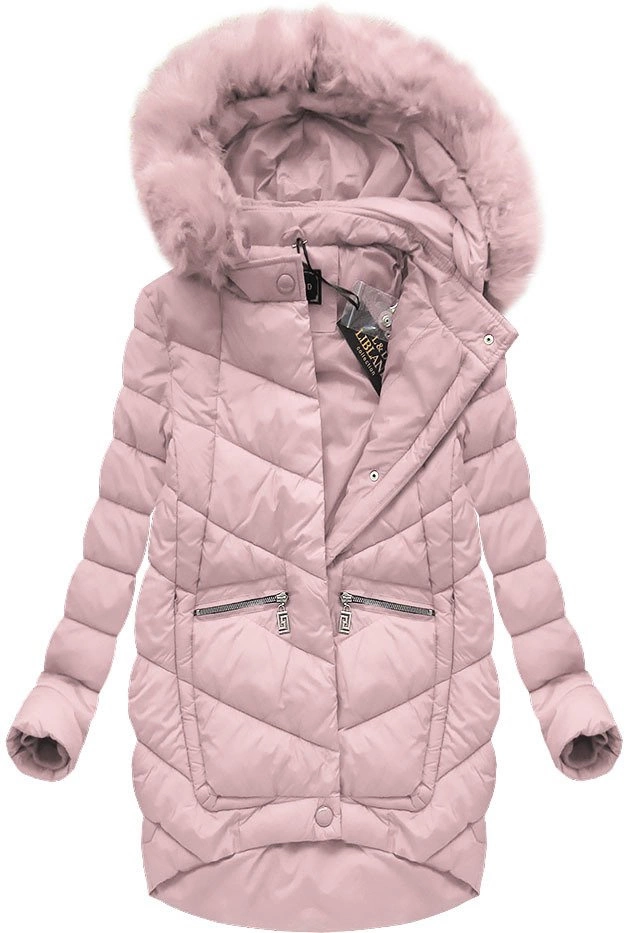 ASYMETRYCZNA KURTKA Z KAPTUREM PUDROWY RÓŻ (7681)