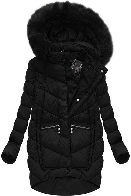 ASYMETRYCZNA KURTKA Z KAPTUREM CZARNA (7681)