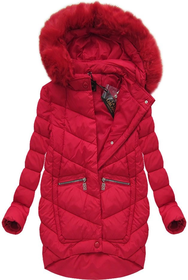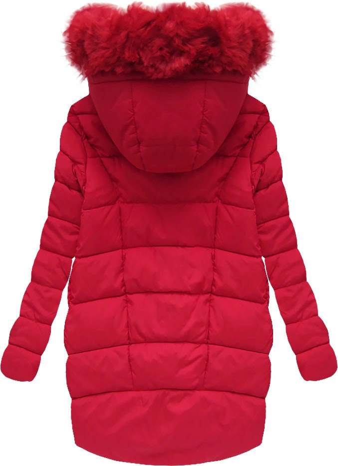 ASYMETRYCZNA KURTKA Z KAPTUREM CZERWONA (7681BIG)