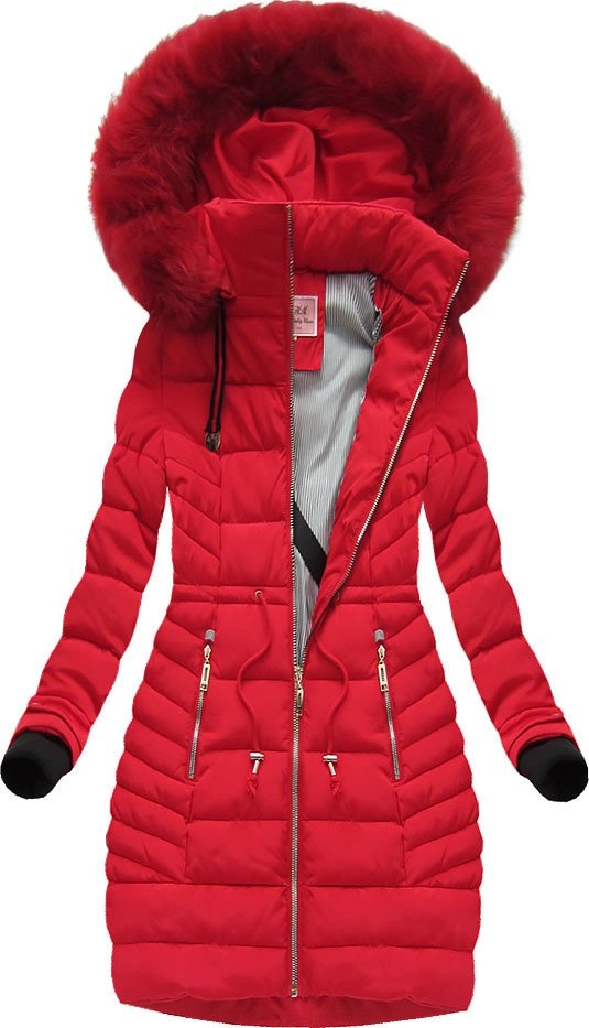 PIKOWANA KURTKA Z KAPTUREM CZERWONA (W143)
