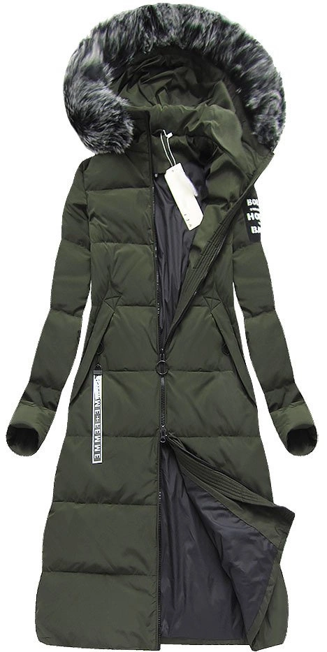 PŁASZCZ DAMSKI ZIMOWY Z PUCHEM NATURALNYM KHAKI (7078)