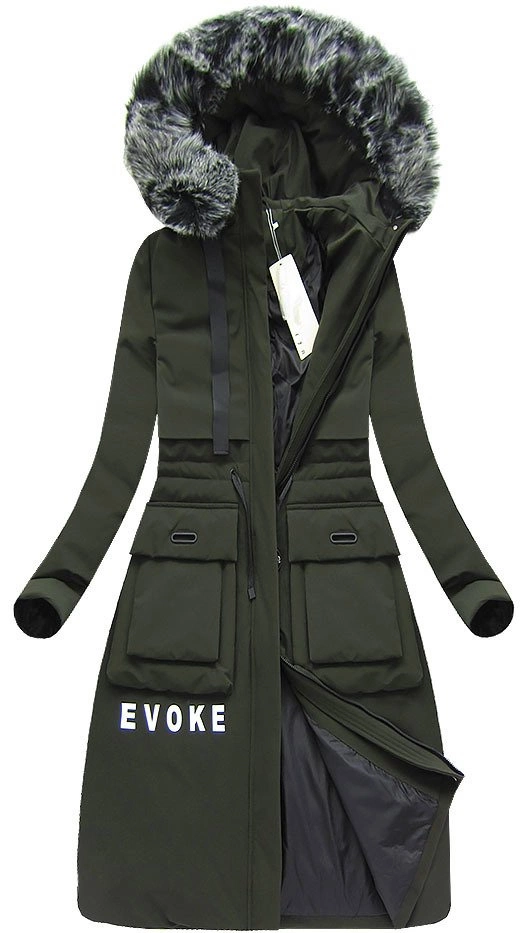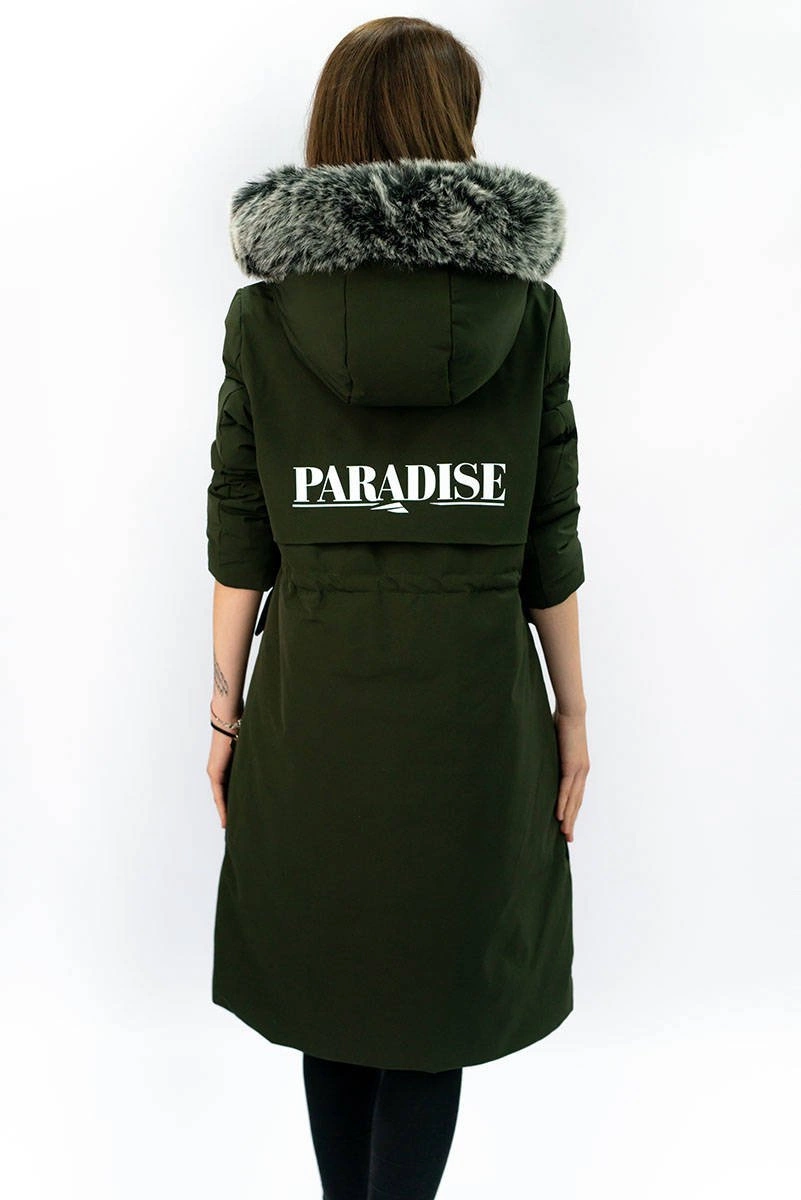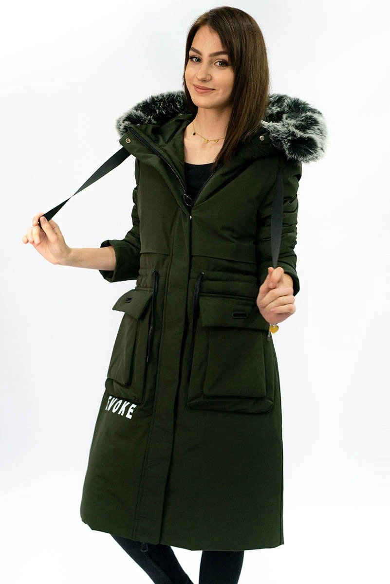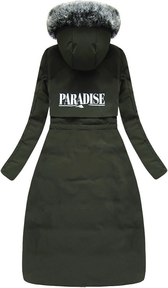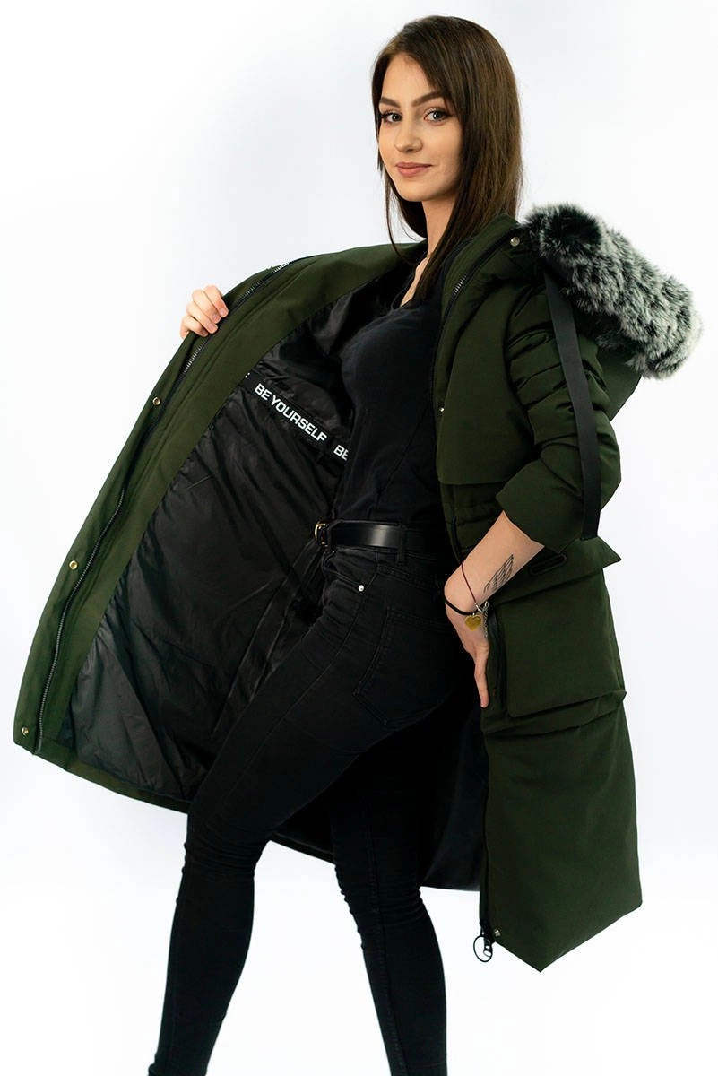 PŁASZCZ DAMSKI ZIMOWY Z PUCHEM NATURALNYM KHAKI (X7087X)
