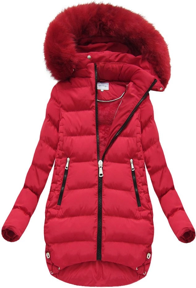 PIKOWANA KURTKA Z KAPTUREM CZERWONA (W578)