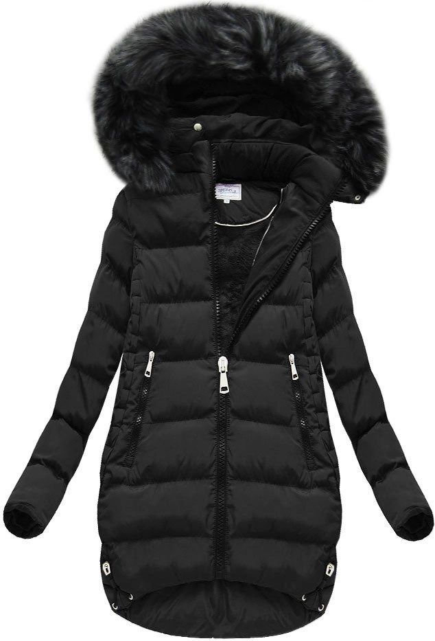 PIKOWANA KURTKA Z KAPTUREM CZARNA (W578)