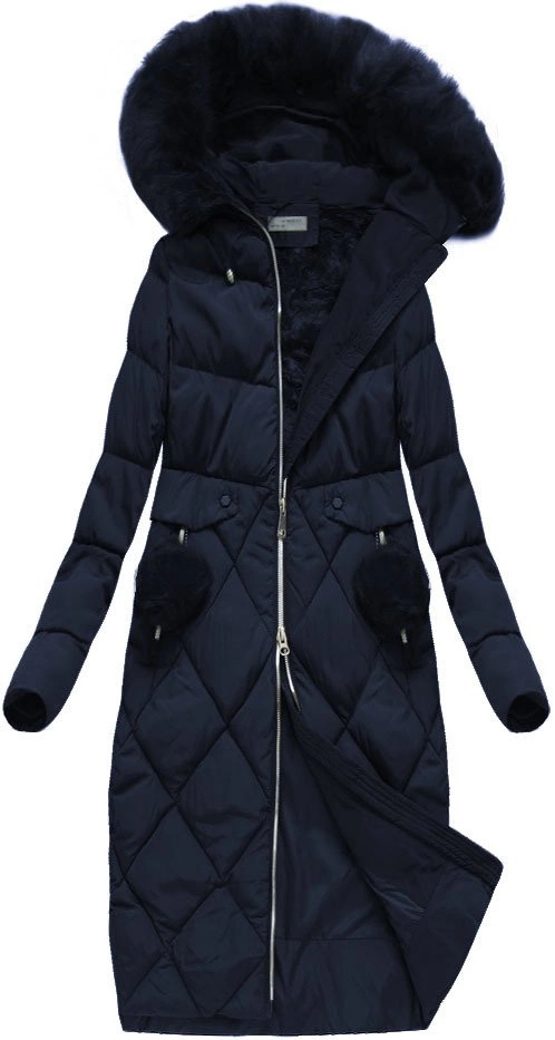 DŁUGA KURTKA ZIMOWA Z KAPTUREM GRANATOWA (B3581)