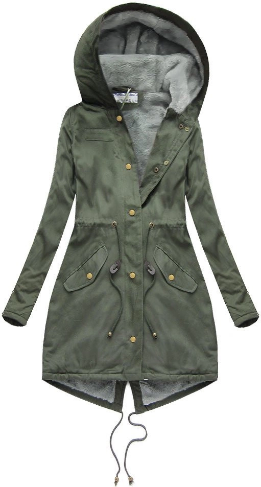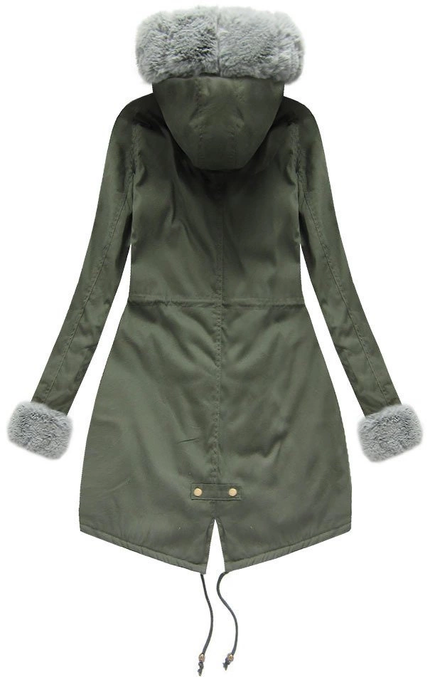 BAWEŁNIANA PARKA DAMSKA ZIMOWA Z FUTREM KHAKI-SZARA (K720)