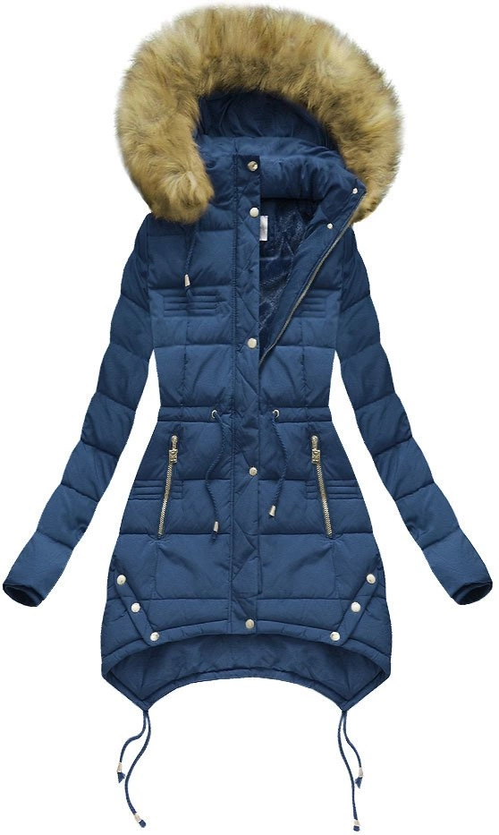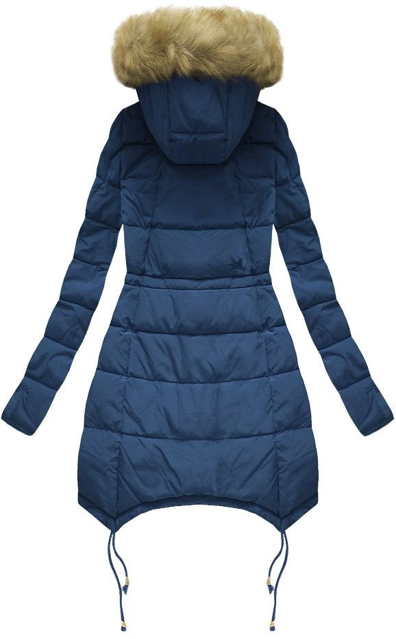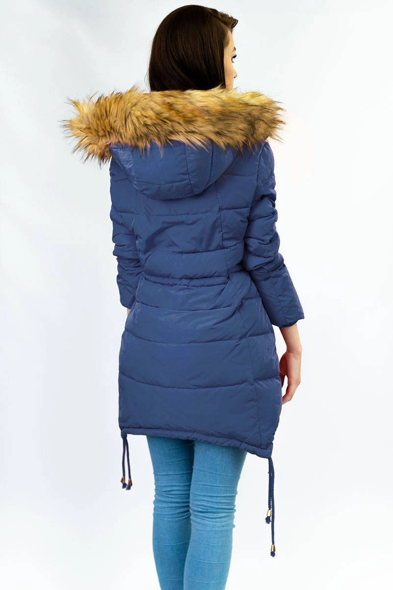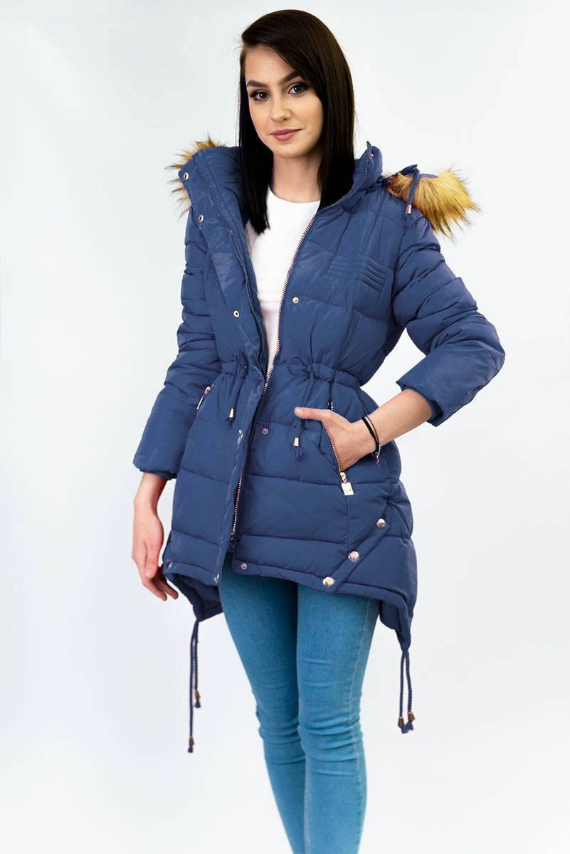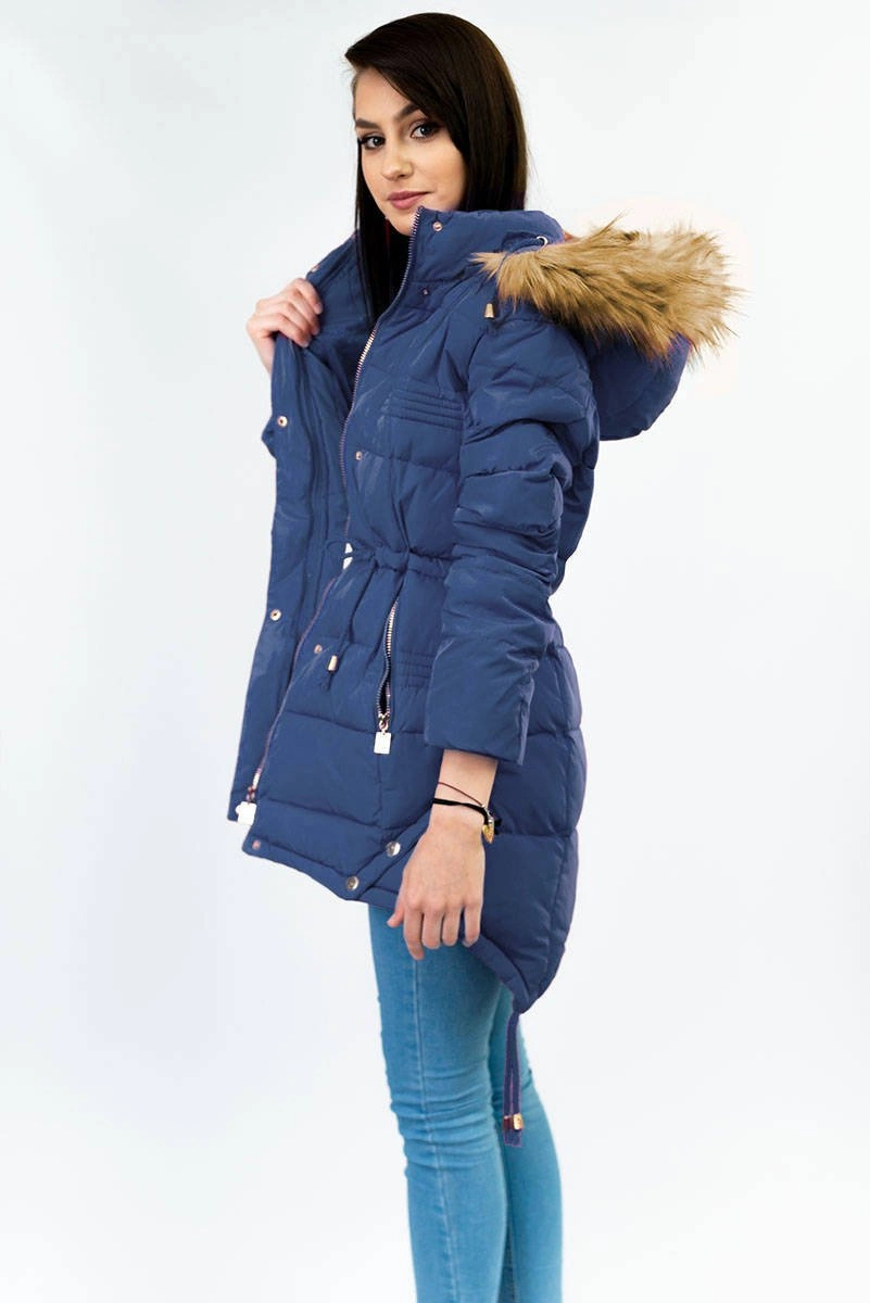 PIKOWANA KURTKA DAMSKA ZIMOWA Z KAPTUREM GRANATOWA (3605W)