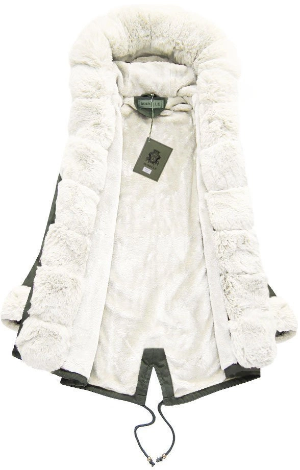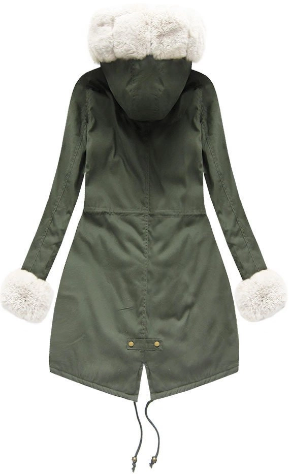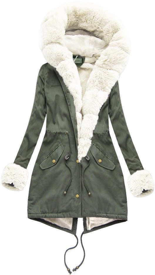BAWEŁNIANA PARKA Z FUTREM KHAKI-BIAŁA (6128)