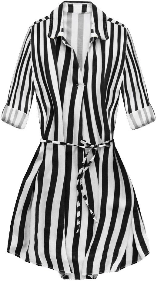 SUKIENKA KOSZULOWA W PASKI BIAŁO-CZARNA (8852)